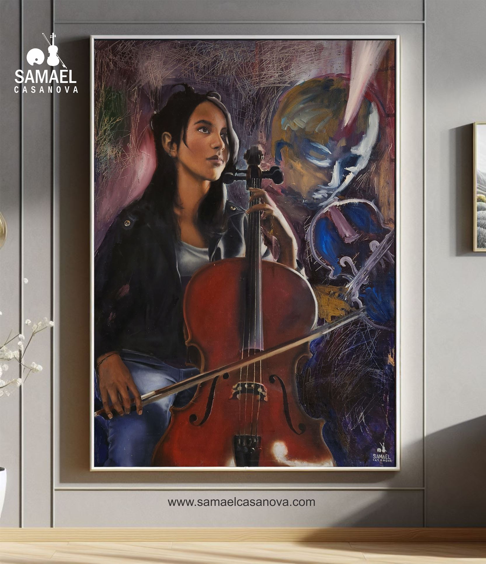Esta pintura es la versión máster de otra de mis pinturas, de las más primitivas de mi comienzo, aún la tengo, luego pretendo actualizar esa información, pinto como toco violín, como compongo mi música, en mi logo hay una paleta de pintura a la izquierda como un escudo, y un violín a la derecha con el arco como una espada, desde la niñez dibujaba, desde mi adolescencia pintaba, y también soñaba, y amaba lo que hacía, hasta que me llegué a un punto de mi vida en donde tenía que decidirme qué camino debía seguir y dedicarle mi vida, simplemente no pude hacerlo, me quedé con las dos artes, nací para esto, así que a veces me convierto en pintura y a veces en música y a veces en las dos cosas.